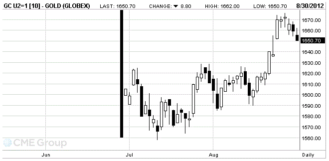 The cost of the September gold futures on the COMEX is now 1650.7 dollars per ounce.