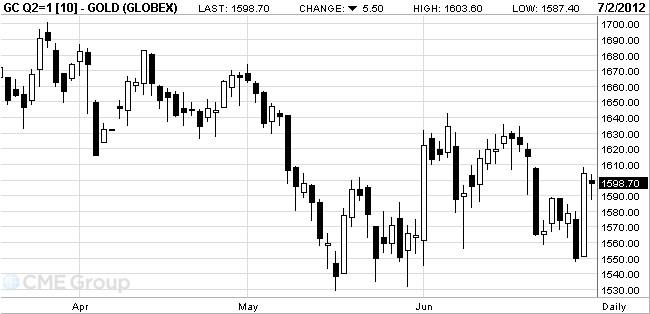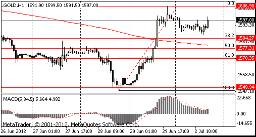 The price of gold is reduced to the background of unfavorable macroeconomic data. Disappointing investors brought the report of the Institute for Supply Management index of business activity in U.S. industry (ISM index) in June 2012 decreased to 49.7 index points compared with the value for May 2012 to 53.5 points. An index value below 50 points indicates a decline in industrial production. The organization noted that the index fell below this level the first time since July 2009 Meanwhile, analysts predicted that the index will be 52.0 points.