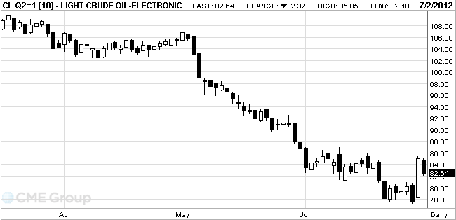 Crude for August delivery dropped to $82.10 a barrel on the New York Mercantile Exchange. The percentage gain was the biggest since March 12, 2009. Oil is down 17 percent this year.