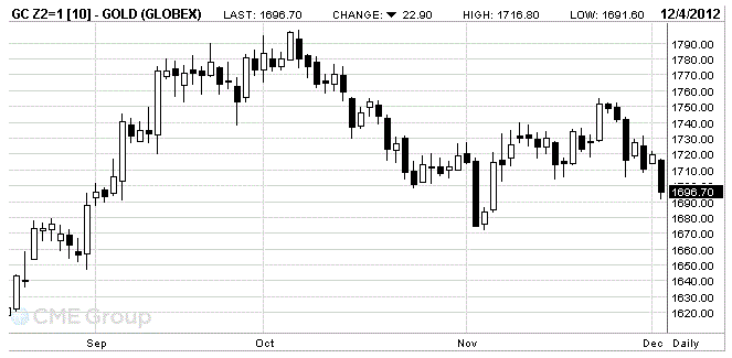 December futures price of gold on the COMEX is now 1696.70 an ounce.