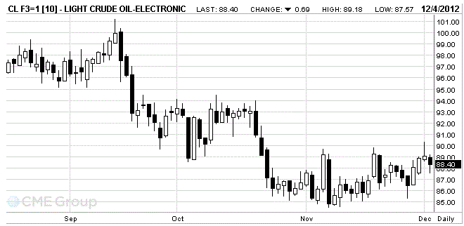 Recall that in the past month, futures for West Texas Intermediate crude oil prices have seen a slow but steady increase from $ 84 to a maximum of about $ 90. But fears that the U.S. economy may be significantly affected by the failed negotiations related to "budget cliff" reduces the likelihood of further growth.