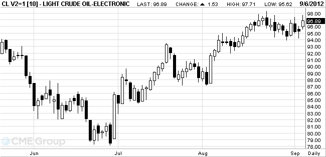 Crude oil for October delivery advanced to $97.71 a barrel on the New York Mercantile Exchange.