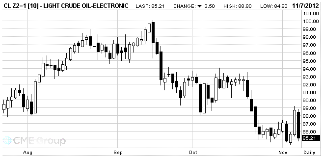 December futures price of U.S. light crude oil WTI (Light Sweet Crude Oil) fell to 85.15 dollars a barrel on the New York Mercantile Exchange.