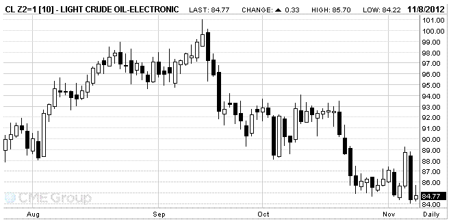 December futures price of U.S. light crude oil WTI (Light Sweet Crude Oil) rose to 84.77 dollars a barrel on the New York Mercantile Exchange.