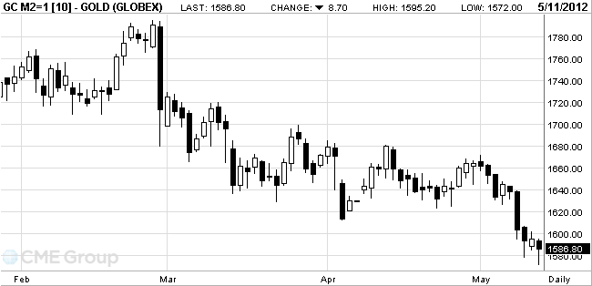 The cost of the June gold futures on the COMEX fell today to $ 1572.0 an ounce and is now trading at $ 1586.8 an ounce.