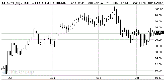 November futures price of U.S. light crude oil WTI (Light Sweet Crude Oil) is 92.52 per barrel on the New York Mercantile Exchange.