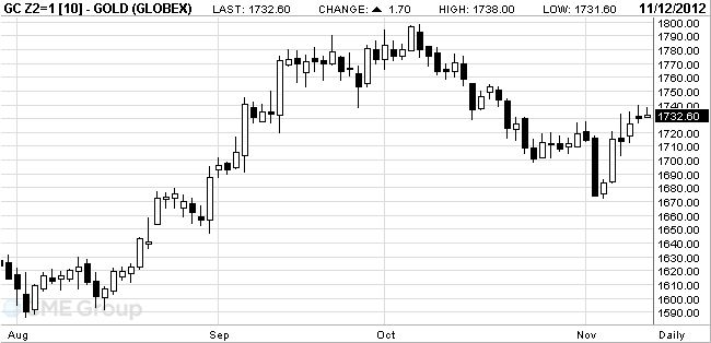 Precious metal rising in price while the dollar is under pressure from fears about threatening the U.S. financial crisis. If the White House and Congress agree, at the beginning of next year, will come into force automatically spending cuts and tax increases, estimated at $ 600 billion, which could push the U.S. economy into recession.