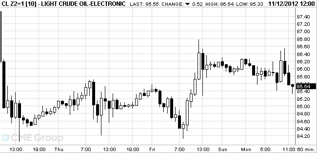 Crude oil for December delivery traded in a range of $85,42 – $86,54 a barrel on the New York Mercantile Exchange. Prices are down 13 percent this year.