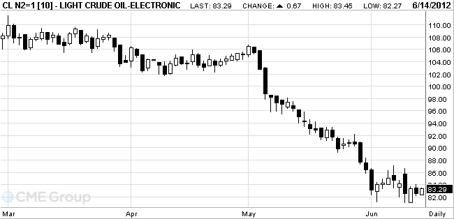 Oil for July delivery gained to $83.45 a barrel on the New York Mercantile Exchange. The futures fell to $82.62 yesterday, the lowest settlement since Oct. 6. Prices have decreased 16 percent this year.