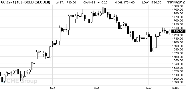 The price of gold is increasing amid published unfavorable macroeconomic data and discussions on the "fiscal cliff."
