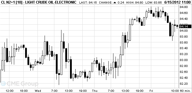 Crude for July delivery rose to $84.80 a barrel on the New York Mercantile Exchange. Prices are down 0.1 percent this week and 15 percent this year.