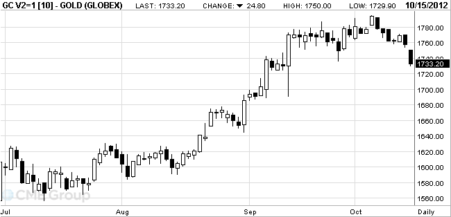 October futures price of gold on the COMEX fell $ 23.70 today and now is 1733.20 an ounce.