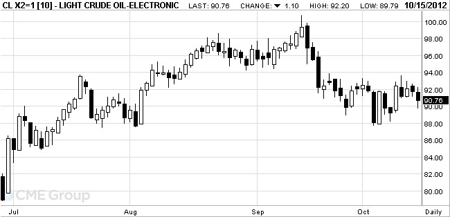Crude oil for November delivery fell to $89.79, the lowest level since Oct. 9. Prices are down 8.8 percent this year.