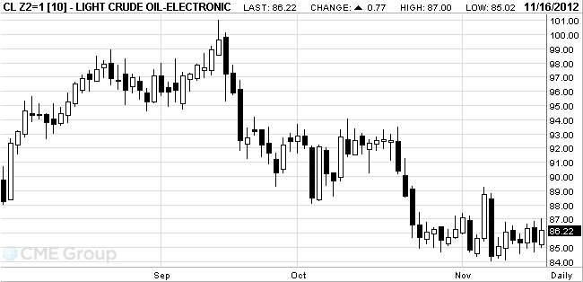 Crude oil for December delivery, which expires today, rose to $87.00 a barrel on the New York Mercantile Exchange.