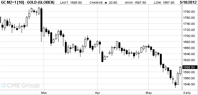 The cost of the June gold futures on the COMEX today rose to a high of $ 1597.5 per ounce.