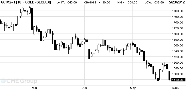 The cost of the June gold futures on the COMEX fell today to $ 1533.9 an ounce.