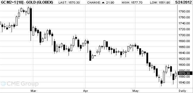 The cost of the June gold futures on the COMEX today rose to a high of $ 1577.7 per ounce.