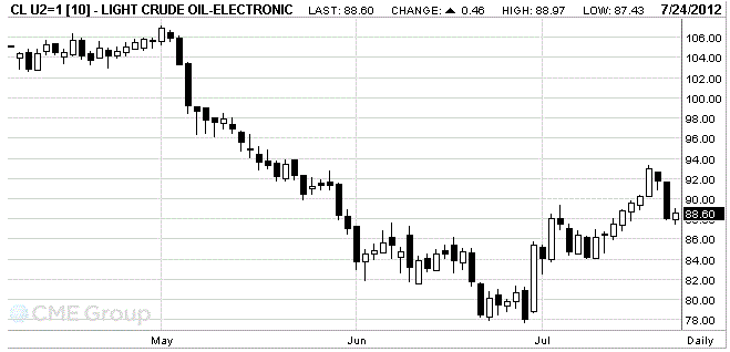 The cost of the September futures on U.S. light crude oil WTI (Light Sweet Crude Oil) on the NYMEX is now at $ 88.5 per barrel.