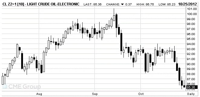 December futures price of U.S. light crude oil WTI (Light Sweet Crude Oil) is 85.34 per barrel on the New York Mercantile Exchange.