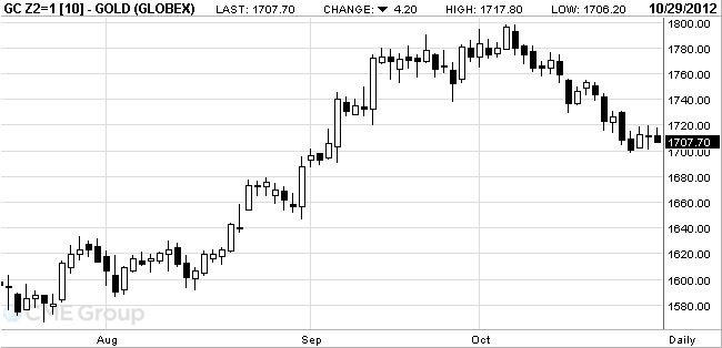 December futures price of gold on COMEX today fell to 1707.70 dollars per ounce.