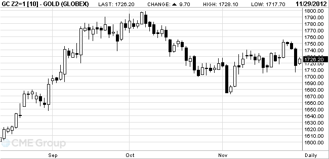December futures price of gold on COMEX today rose to 1728.10 dollars per ounce.