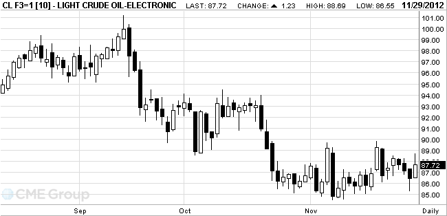 Crude for January delivery climbed to $88.69 a barrel on the New York Mercantile Exchange. Prices are up 2.5 percent this month.