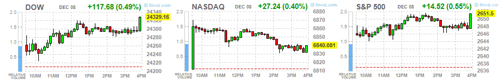 The main U.S. stock benchmarks closed moderately higher Thursday, with the S&P 500 snapping a four-session losing streak on the back of gains in the technology, industrials and materials sectors. Traders focused on continued progress on tax legislation and looked ahead to the monthly jobs report due Friday.