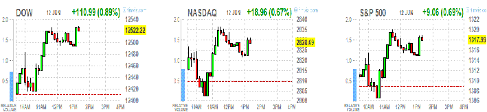 U.S. stocks rose, rebounding from yesterday’s slump, as speculation that policy makers will stimulate the economy overshadowed concern about Europe’s debt crisis after Fitch Ratings downgraded 18 Spanish banks.
