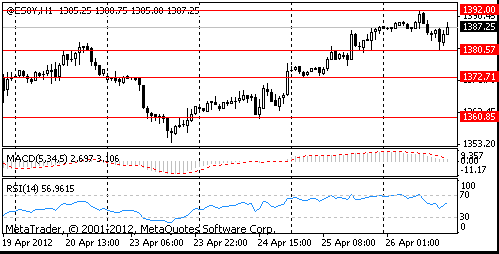 Shares of Volkswagen jumped 8.6% after the world’s second-largest carmaker reported a 10 percent jump in first-quarter operating profit to 3.21 billion euros. After Volkswagen’ report Porsche increased 7.3%, Daimler AG increased 3.4% and Volvo AB advanced 2.7%.