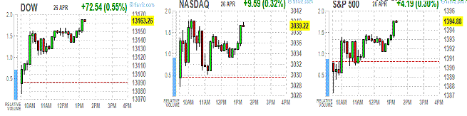 DOW 13,090.70 +89.16 0.69%, S&P 500 1,390.69 +18.72 1.36%, NASDAQ 3,029.63 +68.03 2.30%