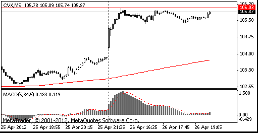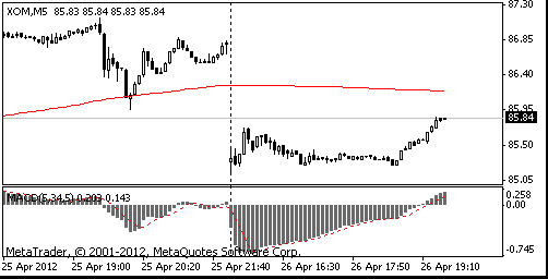 Exxon (XOM) declined 1.6% to $85.84 after saying net income fell 11%.