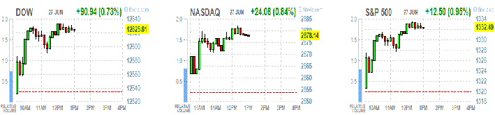 Equities rose today as the S&P/Case-Shiller index of property values in 20 cities dropped 1.9 percent in April from the same month in 2011, the smallest decline since November 2010, after decreasing 2.6 percent in the year ended March. The data overshadowed a surge in yields at auctions in Italy and Spain ahead of a European Union summit on June 28.