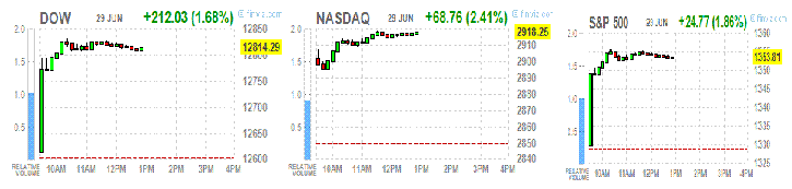 U.S. Stocks have shown a significant increase today after European leaders agreed that reducing the concern for the banks fail. They also said they plan to establish a single supervisory authority for banks in the eurozone. They agreed that in the euro area mortgage fund should be able to directly raise capital to help banks without increasing public debt.