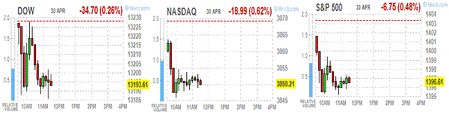 US Stocks fell as data showed business activity expanded at the slowest pace since November 2009 and Spain’s economy entered into a recession.