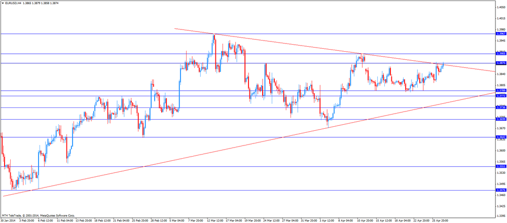 EUR/USD: the currency pair was up to $1.3865