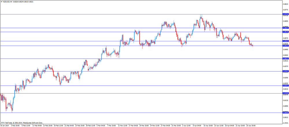 The New Zealand dollar was down against the U.S. dollar and has reached a three-and-a-half week low on Tuesday. The weaker-than-expected trade surplus and the better-than-expected U.S. pending home sales had a negative impact on the New Zealand’s currency. New Zealand's trade surplus increased to NZ$920 million in March. But the figure in February was revised down to NZ$793 million from NZ$818 million. The projected trade surplus was NZ$937 million.