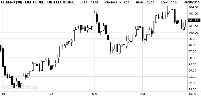 “We’re up on two factors today, the continuing crisis in Ukraine and speculation about the U.S. storage numbers,” said Bob Yawger, director of the futures division at Mizuho Securities USA Inc. in New York. “The focus of the market switches from the Cushing number to the national total. Cushing supplies are at the lowest level since 2009 already while total U.S. supply is approaching a massive 400 million barrels.”
