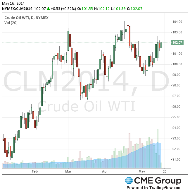 WTI for June delivery rose 21 cents to $101.71 a