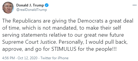 Donald J. Trump @realDonaldTrump: "The Republicans are giving the Democrats a great deal of time, which is not mandated, to make their self serving statements relative to our great new future Supreme Court Justice"