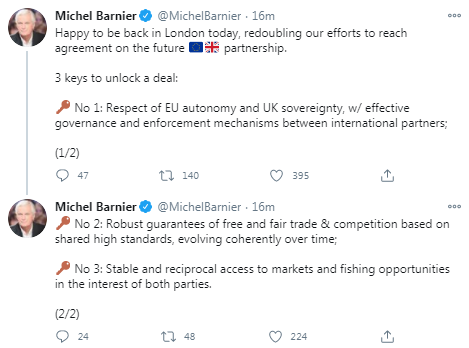 EU's chief Brexit negotiator Barnier announces "3 keys to unlock a deal"