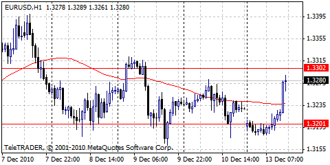 EUR/USD the euro is strengthening, reaching res at $1.3300.