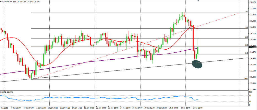 EUR/JPY has suffered a huge depreciation earlier in this week, largely due to recent stock-market corrections.