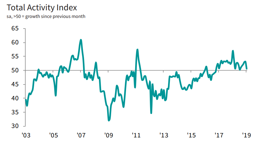 A figure above 50 shows an increase while below 50 shows a decrease.