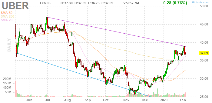 Uber (UBER) reported Q4 FY 2019 GAAP loss of $0.64 per share, better than analysts' consensus estimate of -$0.68 per share.