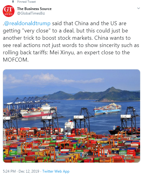 The countries agreed in October to conclude a preliminary trade agreement, but talks have failed to produce deals on agricultural purchases by China and rollbacks of existing tariffs imposed by the United States. Many analysts had expected a deal ahead of Dec. 15.