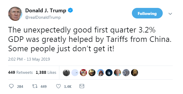 "We will be taking in Tens of Billions of Dollars in Tariffs from China. Buyers of product can make it themselves in the USA (ideal), or buy it from non-Tariffed countries," Trump said on Twitter.