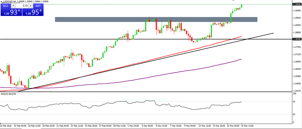 A gráfico de 4 horas podemos que usd/cad voltou a atingir novos máximos relativos.