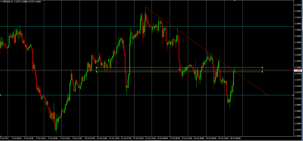 A gráfico de 1 hora podemos constatar que o preço tem vindo a respeitar de forma bastante coerente a nossa linha de tendência descendente.