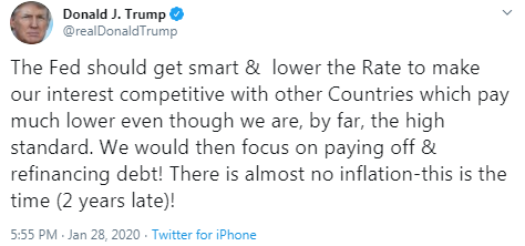 CNBC reports that the Fed is not expected to take any action on its benchmark fed funds rate this week, but it is likely to reassure markets that it is watching the outbreak of the coronavirus and other geopolitical uncertainties.