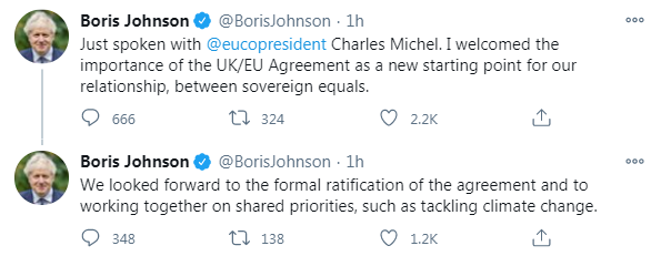 The UK and the EU reached a long-awaited deal on post-Brexit trade relations late last week. According to a spokesman for the German EU Presidency Sebastian Fischer, the Brexit deal got the green light earlier today as the EU ambassadors approved the provisional application of the EU-UK Trade and Cooperation Agreement as of January 1, 2021. The deadline for final adoption by use of written procedure by all 27 EU governments is 14:00 GMT on Tuesday, Fischer added.